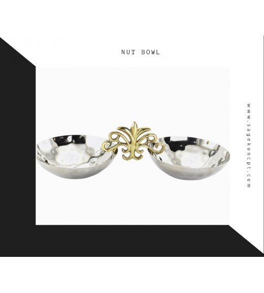 This katori from Sage Koncpt has an elegant design with leaf designs finished in golden colour. The katori can be used to keep dry fruits or snacks, and can also be used as a key bowl or decor item. The bowl is made of stainless steel and has a silver finish.