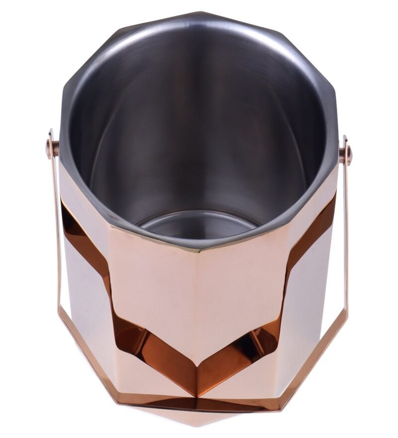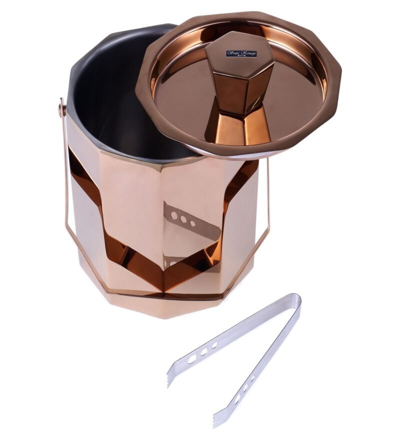 Handmade, this ice bucket not only keeps the ice cold, but also gives some class to your kitchen or bar. The Sage Koncpt ice bucket is made of stainless steel and has a rose gold.