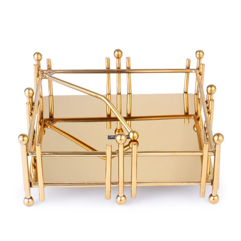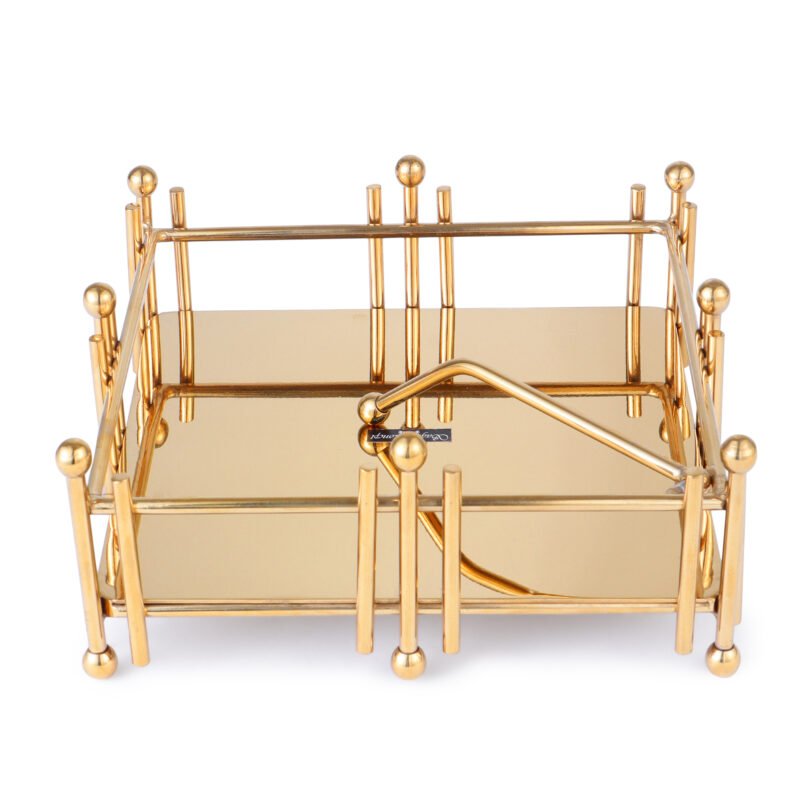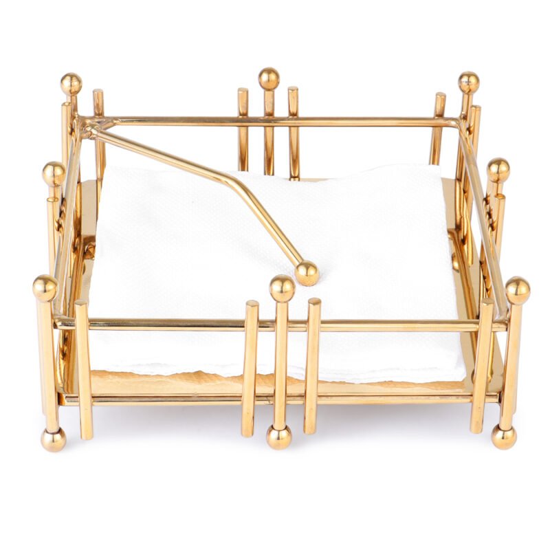 Crafted from stainless steel, this napkin holder set would be a stylish fit on your dining table. The tissue holder is square – shaped Gold finish.
