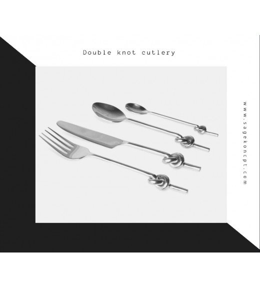 This handmade cutlery set consists of 24 pieces of finely crafted cutlery from Sage Koncpt. The cutlery is made of stainless steel and the 24-piece cutlery set consists of 6 x knives, 6 x forks, 6 x spoons and 6 x baby spoons. The Sage Koncpt cutlery set’s handles have a double knot design and silver finish.
