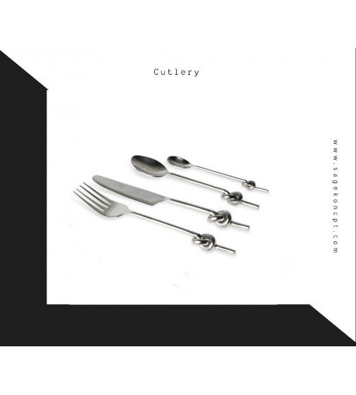 This handmade cutlery set consists of 24 pieces of finely crafted cutlery from Sage Koncpt. The cutlery is made of stainless steel and the 24-piece cutlery set consists of 6 x knives, 6 x forks, 6 x spoons and 6 x baby spoons. The Sage Koncpt cutlery set’s handles have knot design and silver finish.