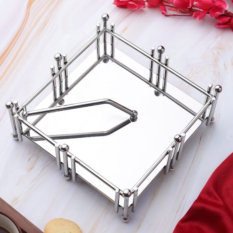 Premium Silver Metal Tissue Holder with Mirrored Base