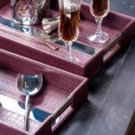 Luxury Decorative Serving Tray Set of 2 | Faux Leather Finish with Mirror Base & Metal Handles | Coffee Table & Bar Tray .Add a touch of luxury to your living space with this elegant decorative serving tray set ,Whether entertaining guests or styling your home, this tray set makes a statement of elegance and also serves as a perfect gift for housewarming, weddings, festivals, or corporate gifting. .